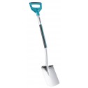 K rytí, kopání, kypření a přesazování. Nový SoftecTM tlumič zmírňuje nárazy při zapichování (např. když narazíte na kámen nebo na silný kořen). Přihlášeno k patentování. Extra široká rukojeť pro dvě ruce pro dobré vedení síly. S prvky z měkčeného plastu pro pohodlnou manipulaci a příjemnou práci. Extra velké stupátko s pevným profilem umožňuje dobré vedení síly a snižuje riziko úrazu neúmyslným sklouznutím. Kapkovitý profil násady zabraňuje náhodnému přetáčení. Optimálně tvarovaná násada s příjemným opláštěním z plastu pro pohodlnou, neklouzavou manipulaci. Kalený list z kvalitní oceli s vysoce kvalitním povlakem. Záruka 10 let. S rukojetí ve tvaru písmene D. Celková délka: cca 117 cm.